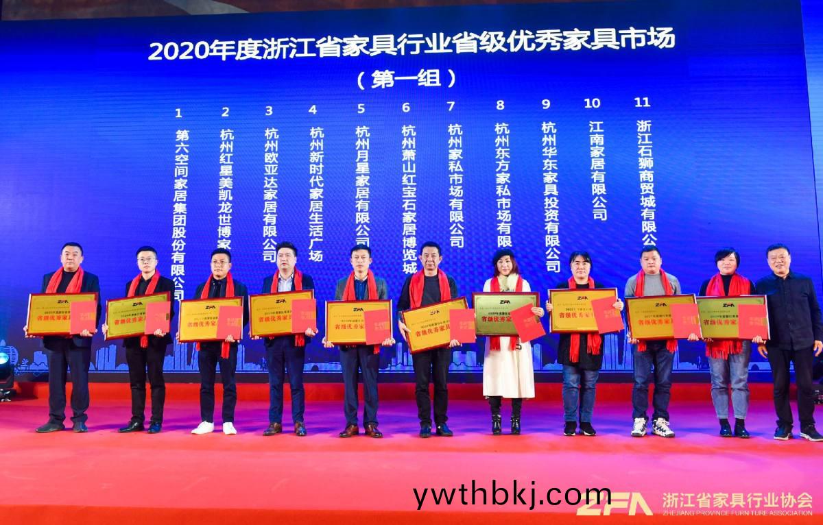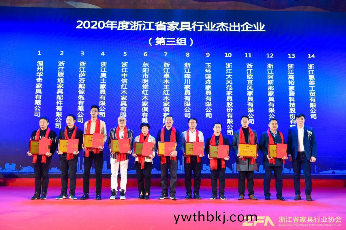 晚宴表彰2020年度浙江省家具行业抗疫爱心企业、领军企业、杰出企业、精英企业、省级优秀家具市场并进行授牌。